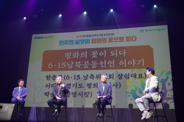 경기도가 광명시와 공동 주최한 이번 토크콘서트에서는 이재강 평화부지사, 박승원 광명시장, 김종률 세종시문화재단 대표이사, 유시춘 EBS이사장, 한충목 6·15 남측위원회 상임대표 등이 참여했다.