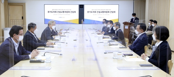 이번 간담회는 표준시장단가 확대 적용 조례 개정안 처리를 협조하기 위한 것으로, 김명원 위원장과 오진택·권재형·조광희·김경일·김종배·김직란·박태희·김규창·오명근·원용희·이필근 의원 등 건교위 위원 12명이 참여해 의견을 주고받았다.