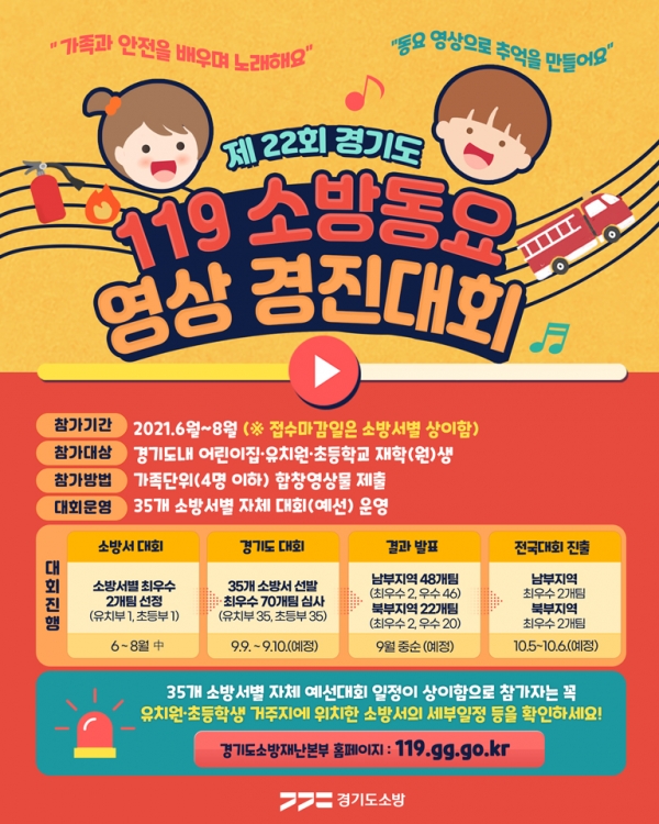 ‘제22회 경기도 119소방동요 영상 경연대회’의 참가자를 모집한다.