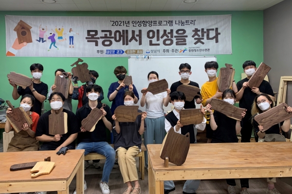 ‘목공에서 인성을 찾다’는 목공을 결합한 인성교육 전문가 과정을 통해 성남시 청년들의 바른 성품과 인성을 길러주고 더불어 살아가는 시민으로 양성하는 진로활동이자 인성교육 프로그램이다.