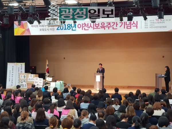 이천시(시장 엄태준)는 5일 서희청소년문화센터 대강당에서 이천시 어린이집 보육교직원 500여 명이 참석한 가운데 2018년 보육주간 행사를 개최했다.