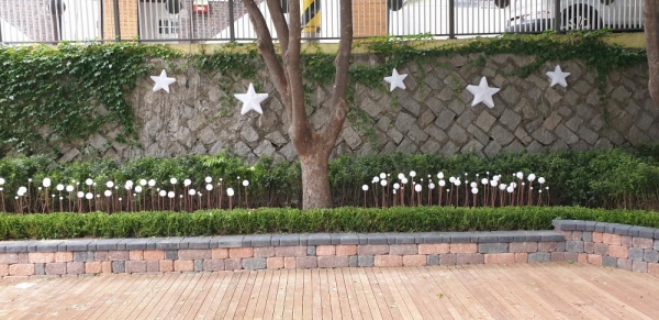 노후된 놀이시설을 창의적이고 다양한 놀이체험 활동이 가능한 조합놀이시설로 전면 교체하였으며 기존 나대지로 방치된 녹지대내 수목 식재와 편한함을 줄 수 있는 데크쉼터, 낮은 지형으로 생긴 옹벽의 벽체를 활용한 은은한 LED 조명을 설치하여 어둡고 칙칙한 분위기를 밝고 환한 분위기로 정감가는 동심의 놀이터로 재정비하였다.