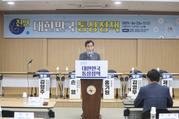 이어 그는 “국제 통상협상에 우리만 차관급 대표를 보내는 것은 스스로 협상력을 떨어뜨리는 결과를 초래한다”면서 “치열한 국제통상 협상에 우리도 장관급을 내보내고, 필요에 따라서는 총리가 힘을 실어주는 체제가 필요하다”고 부연했다.