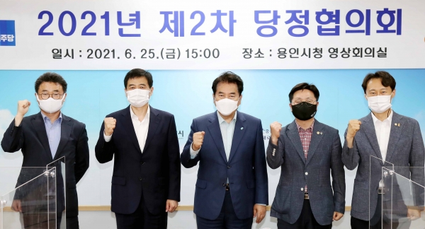 백군기 용인시장은 25일 시청 영상회의실에서 2021년도 제2차 당정협의회를 열어 시민 생활과 밀접한 주요 현안을 토의하고 내년도 국비 확보를 위한 상호협력을 당부했다.