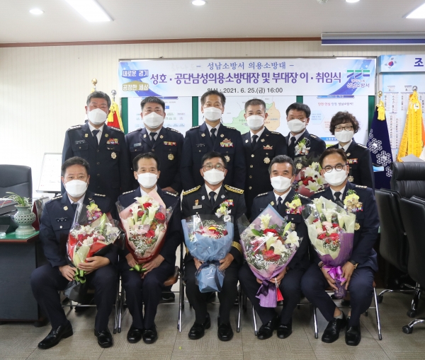 성남소방서(서장 정요안)는 지난 25일 본서 2층 서장실에서 남성의용소방대 대장 및 부대장 이·취임식 행사를 개최했다.