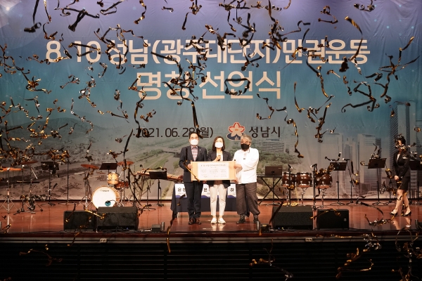 성남시(시장 은수미)는 6월 28일 오전 10시 시청 온누리에서 50여 명이 참석한 가운데 ‘8·10 성남(광주대단지)민권운동 명칭 선언식’을 개최했다.