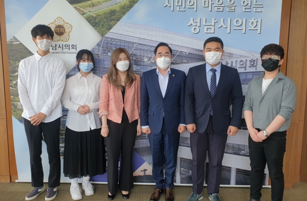 성남시청소년재단(대표이사 진미석)에서 운영하는 성남청년참여단(이하‘참여단’)이 성남시의회와 성남시를 방문하여 성남시의회 윤창근 의장, 강상태 행정교육체육위원장과 성남시 유미열 청년정책과장을 만났다.