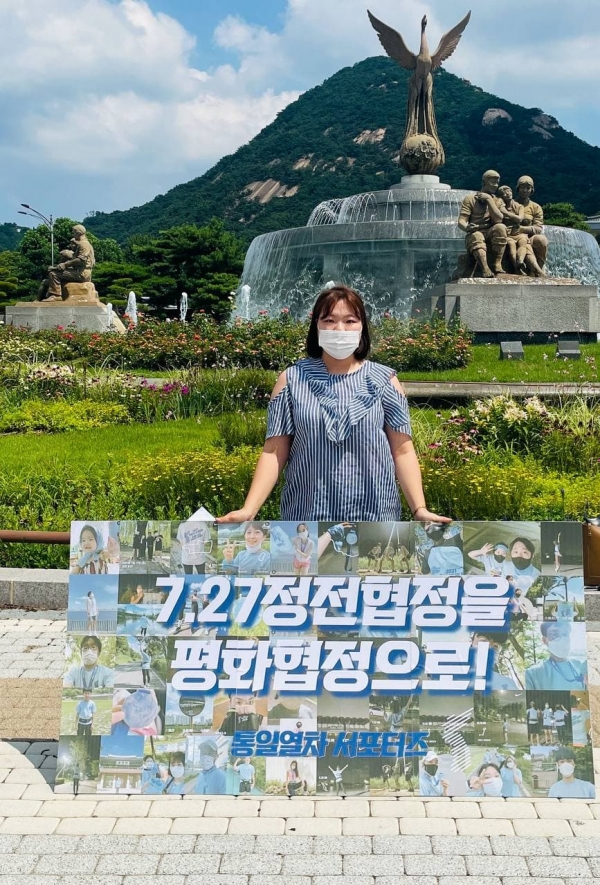 통일열차 서포터즈는 정전협정 68주년을 맞아, 오전 11시 청와대 분수대 앞에서 7.27정전협정을 평화협정으로 체결을 요구하는 기자회견을 진행하였다.
