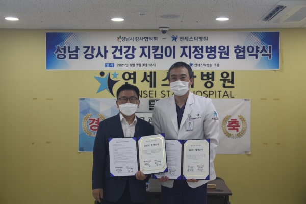 성남시 강사협의회(회장 조두행)는 8월 3일 연세스타병원(병원장 권오룡, 허동범)과 지정병원 협약을 맺었다. 연세스타병원 5층에서 진행된 이번 협약을 통해 성남시에서 활동하는 강사와 그 가족들은 다양한 의료 혜택을 받을 수 있게 됐다.