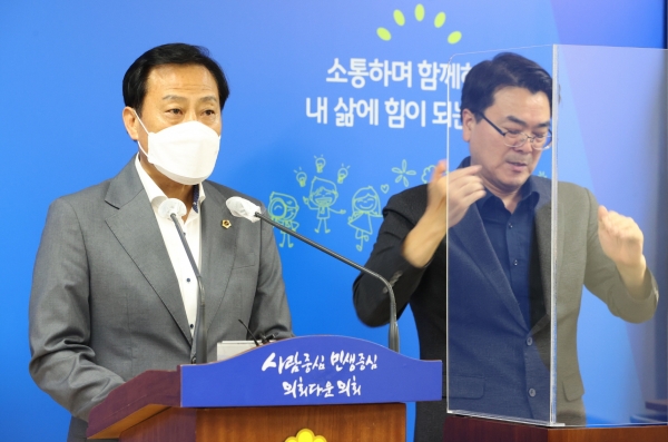 경기도의회 장현국 의장은 기자회견을 갖고 이재명지사가 도민에게 재난기본소득을 지급한다고 밝인 독단적처사에 깊은 유감을 표명했다,이에 민주적·절차적 정당성을 엄수하며 코로나19 위기를 극복해 나가겠습니다!존경하는 1,380만 경기도민 여러분.코로나19 사태가 급속히 악화하고 있습니다.도민 피로감은 극에 달했습니다.