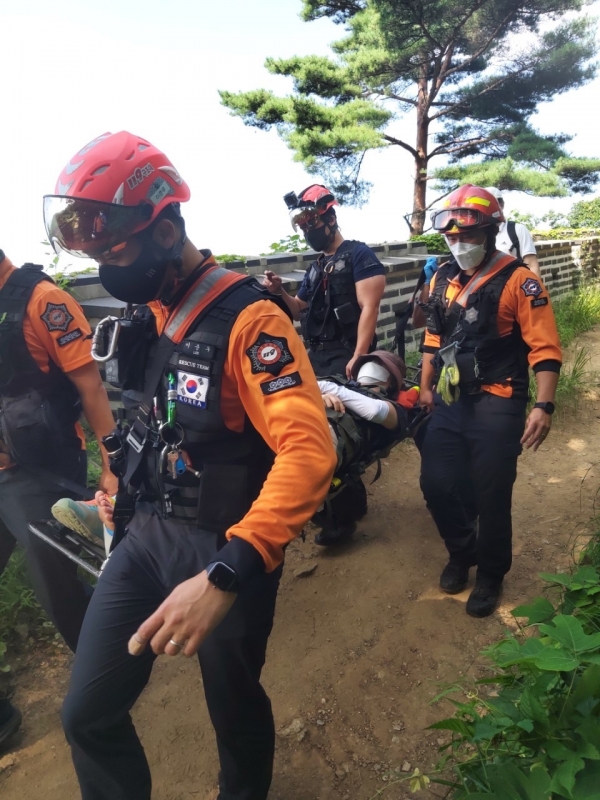 요구조자는 16일 오후 남한산성 등산 중 발목을 다쳐 거동이 불가하고 이미 1시간 30분 등산하여 내려 갈 수도 없는 상황이었으나 성남소방서 구조대원들의 신속출동, 안전구조로 병원에서 치료를 무사히 마쳤다는 내용이다.