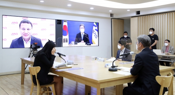 이재명 지사는 20일 경기도청에서 싱가포르의 주택공급과 도시 인프라를 총괄하는 데스몬드 리(Desmond Lee) 국가개발부 장관과 ‘공공주택 보급’을 주제로 온라인 화상면담을 진행했다.