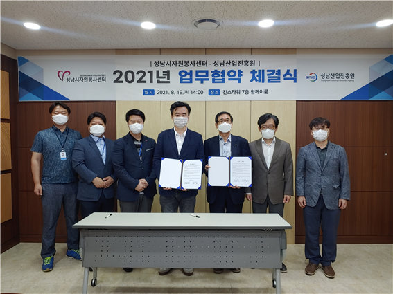 성남산업진흥원은(원장 류해필) 지난 19일 성남시자원봉사센터와 양측 기관장이 참석한 가운데 성남시의 자원봉사 및 사회공헌 증진을 위한 업무협약(MOU)을 체결했다.