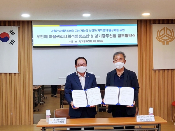 광주시 우전께 마을관리사회적협동조합은 경기광주신협과 마을 관리사회적협동조합의 지속가능한 성장과 지역경제 활성화를 위한 업무협약을 체결했다고 23일 밝혔다.