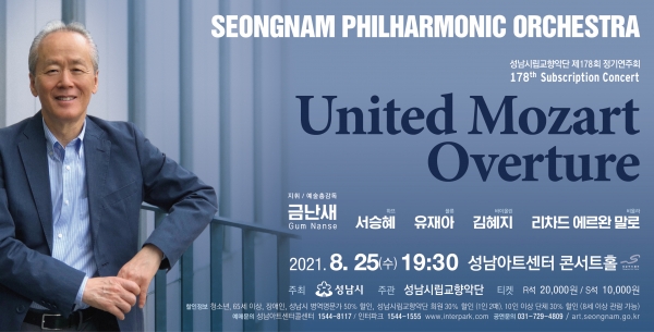 성남시립교향악단은 오는 8월 25일 오후 7시 30분 성남아트센터 콘서트홀에서 제178회 정기연주회를 개최한다.